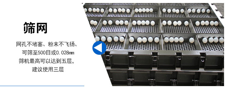 3.網(wǎng)孔不堵塞、粉末不飛揚、可篩至500目或0.028mm;