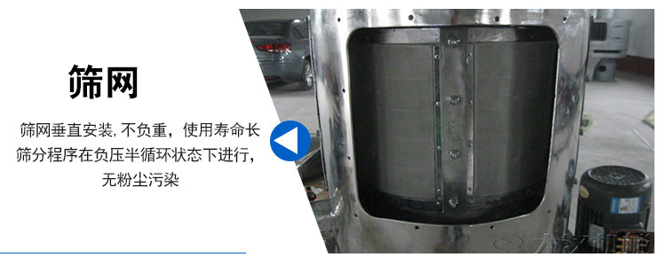 6.篩分程序在負壓半循環狀態下進行,無粉塵污染。